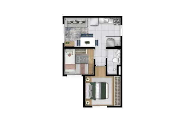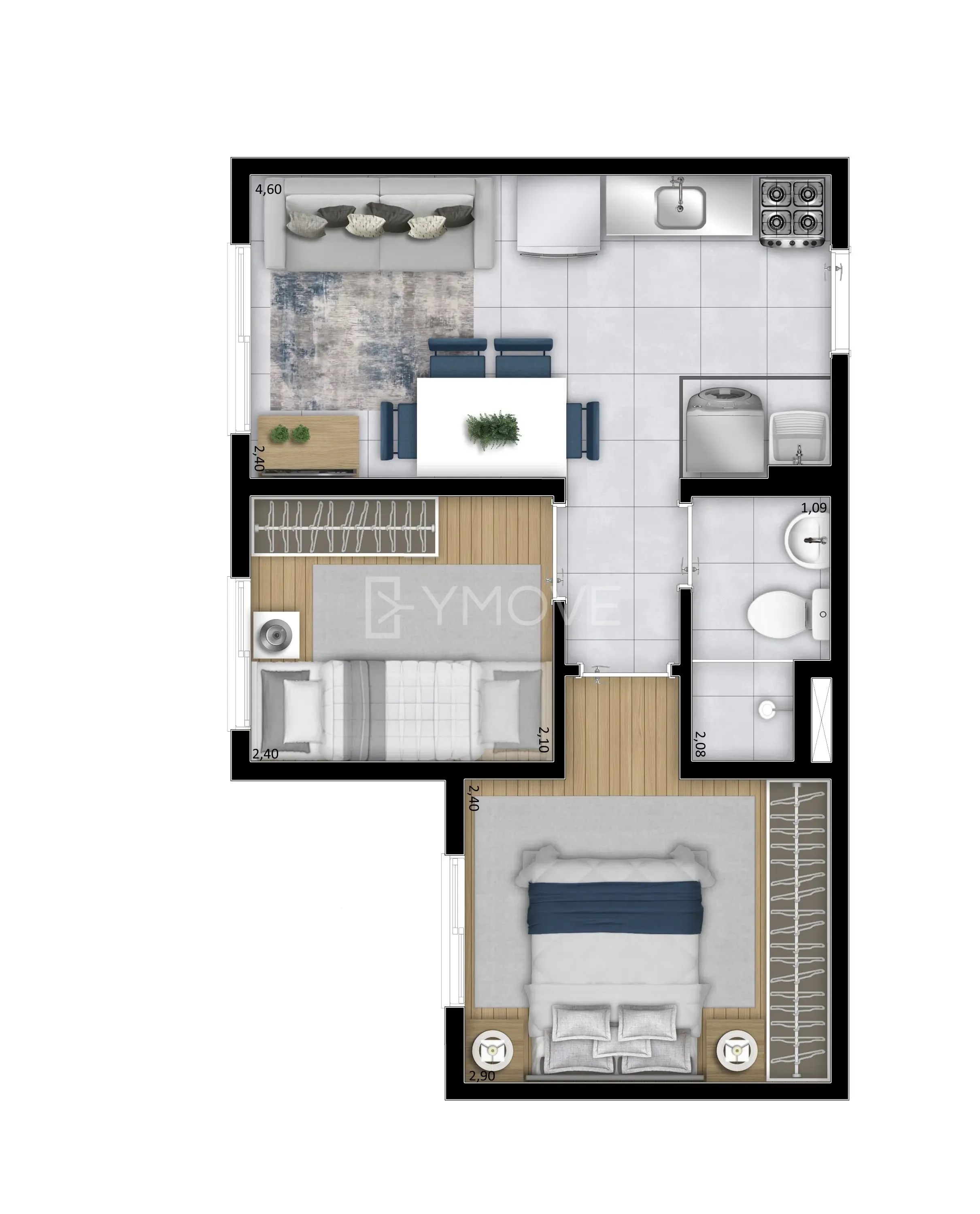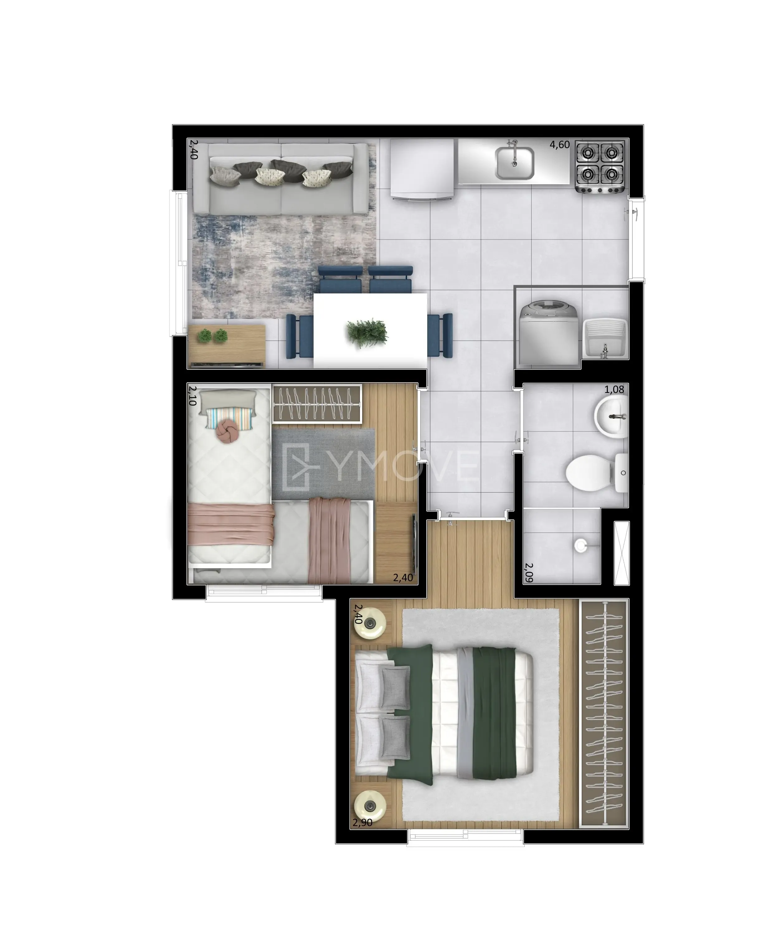 com 2 quartos,