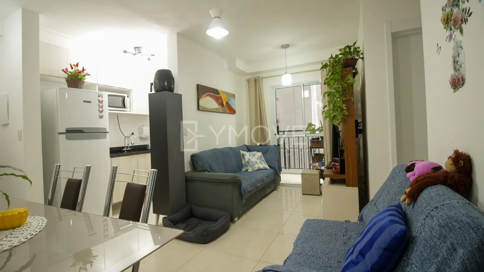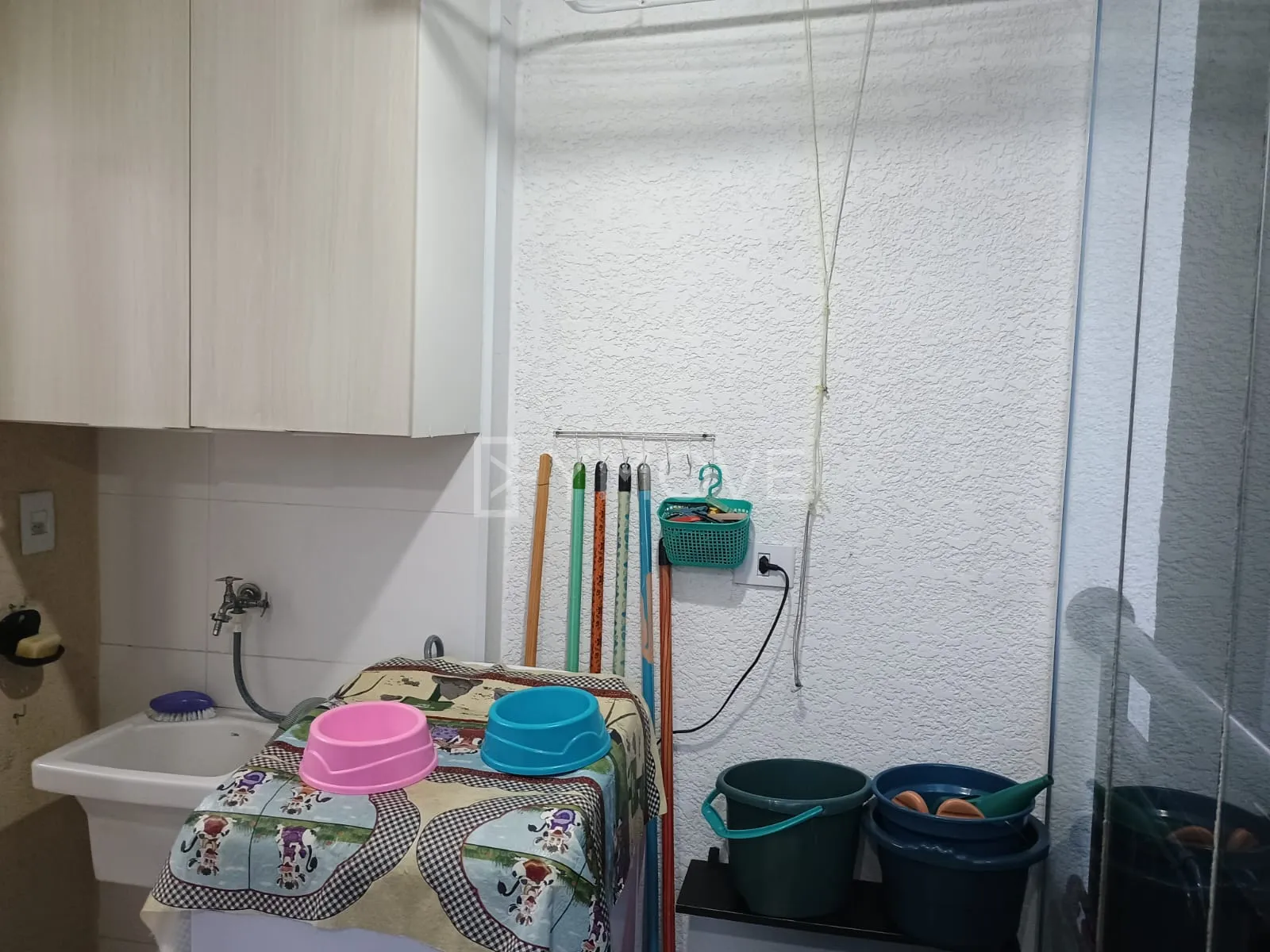 2 Dormitórios, sala, cozinha, área de serviço, varanda, banheiro e vaga de garagem.