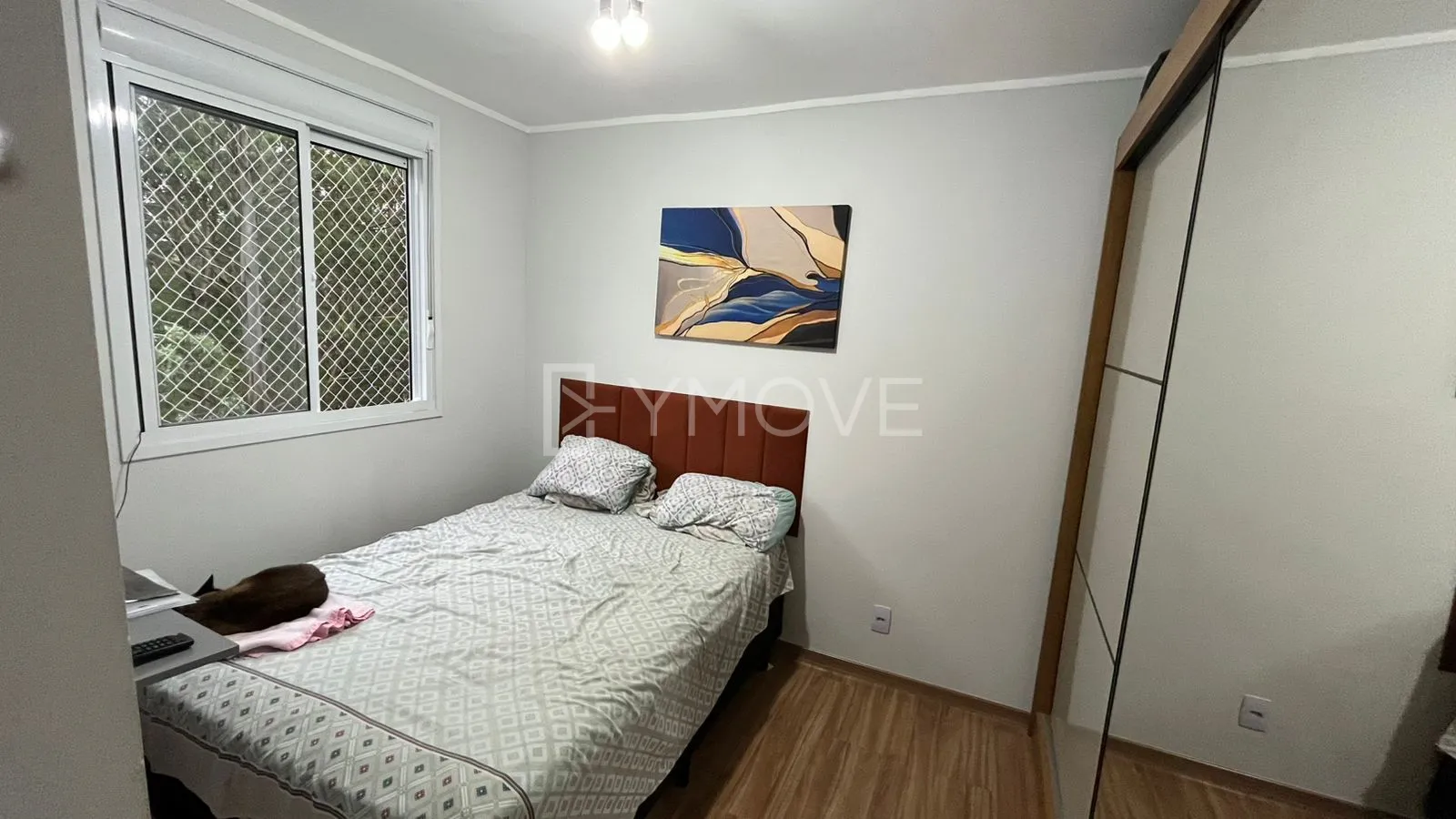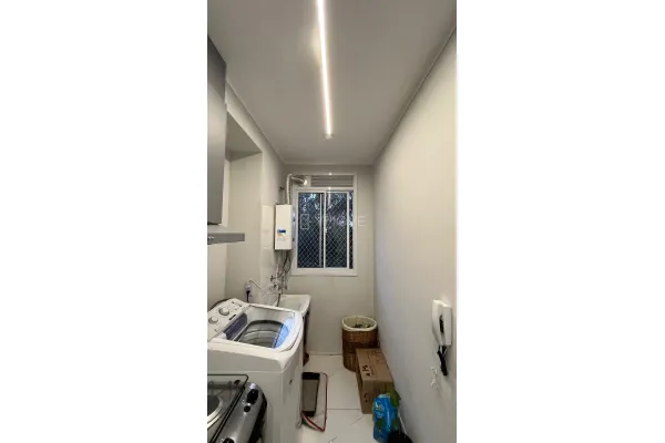 Este aconchegante apartamento de 2 dormitórios com móveis planejados destaca-se pela excelente iluminação, ventilação natural e acabamento em porcelanato com luminárias decorativas. A sala ampla para dois ambientes integra-se à varanda com tela de proteção e vista privilegiada para a área verde, contando ainda com cozinha planejada e chuveiro a gás.