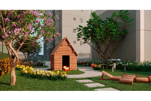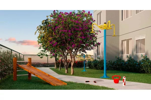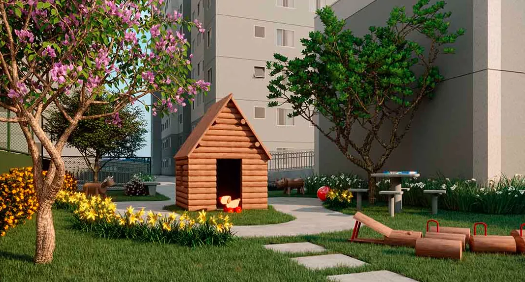 Empreendimento Buritis Itaquera (Zona Leste) 1 e 2 Dormitórios de 40m² a 41m² a partir de R$ 215.000 Valor de condomínio será discutido em assembleia após a entrega das chaves Bicicletário Fitness Externo Horta Piquenique Playground Redário Salão de festa