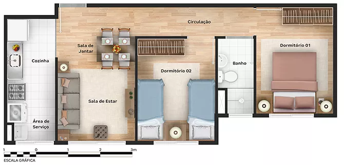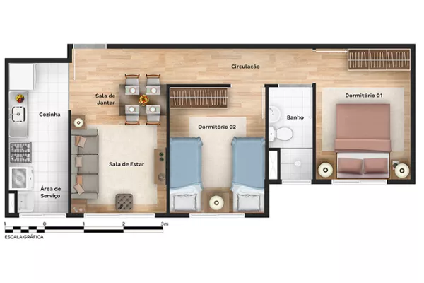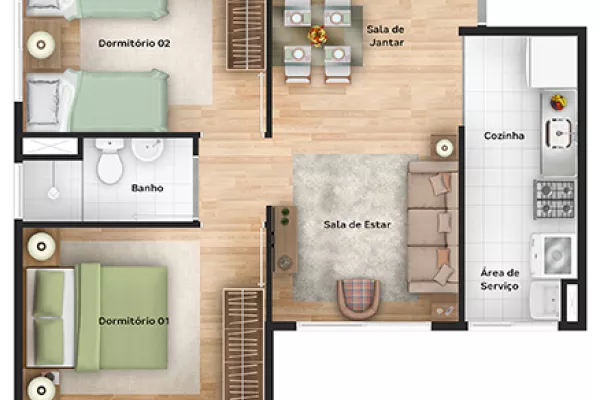 com 2 quartos,