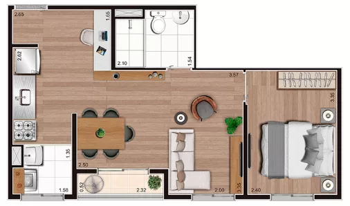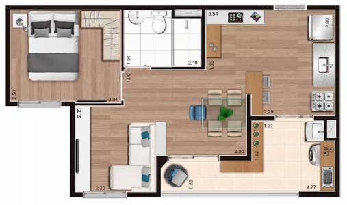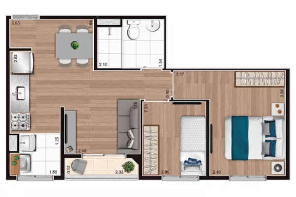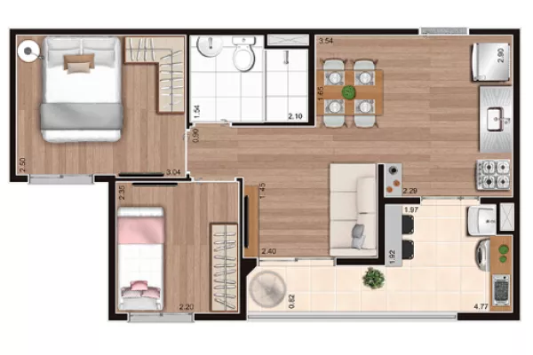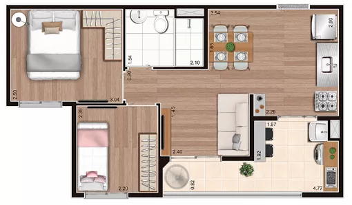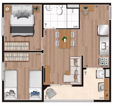 com 2 quartos,
