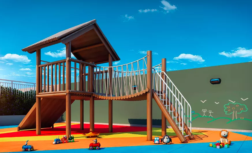 Empreendimento Ton Bosque Maia (Zona Sul) 2 Dormitórios de 40m² | 43m² | 44m² Vaga e Varanda a partir de R$ 238.000,00 Churrasqueiras Piscina adulto e infantil Fitness externo Playground Salão de Festas Fitness Salão de Jogos Pet place Fitness externo Quadra Gramada