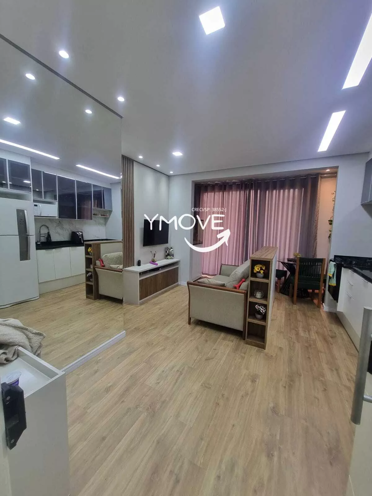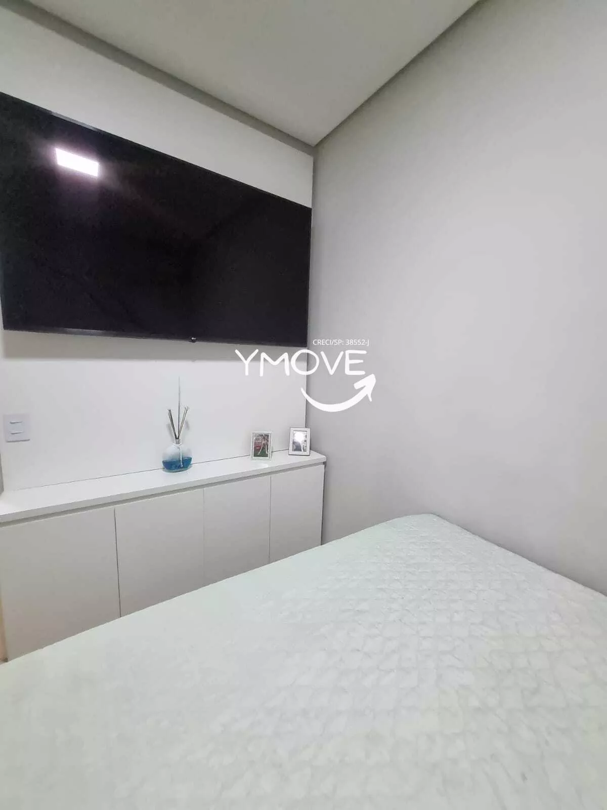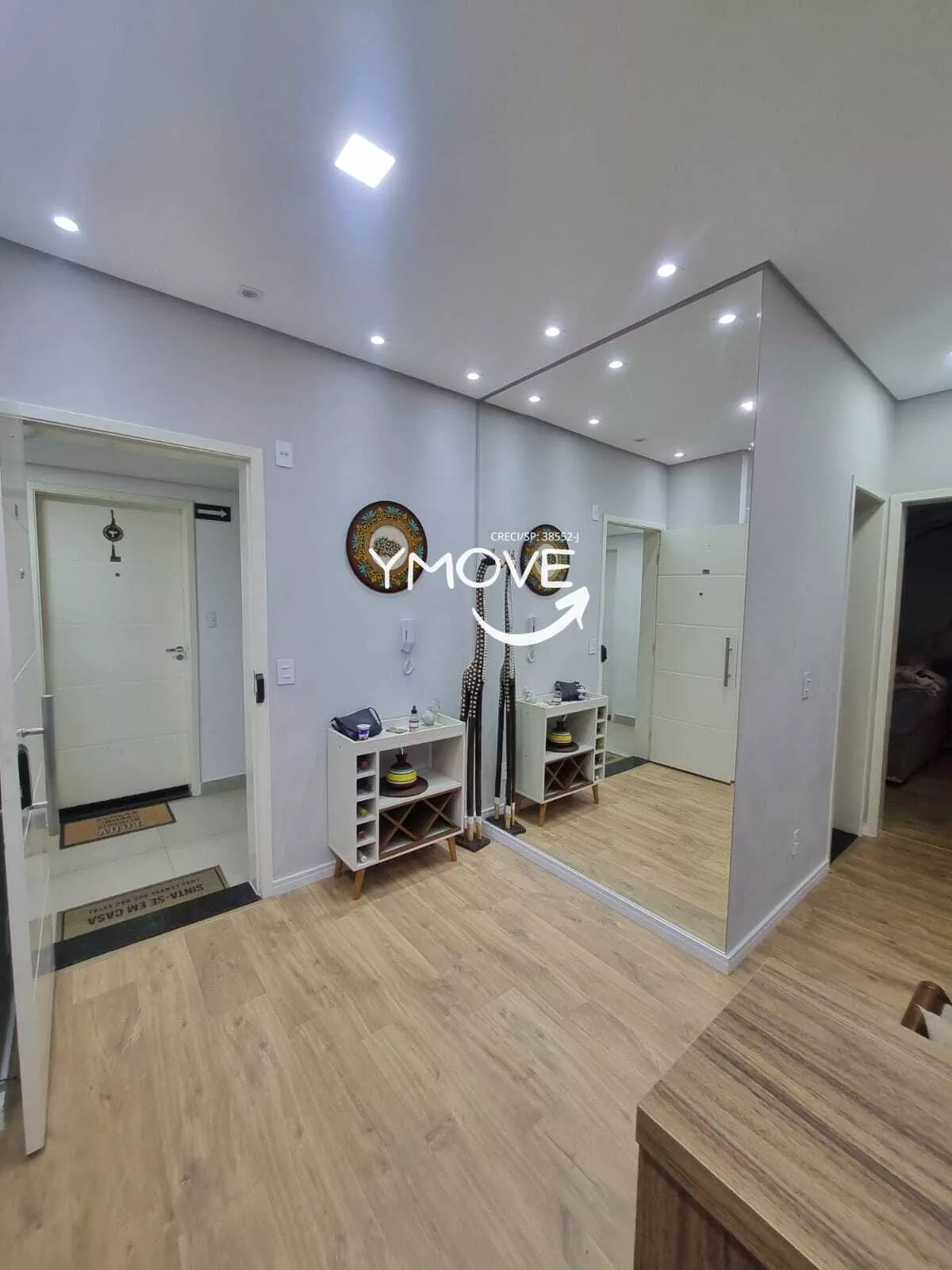 - Sala: rack, painel de TV, espelho parede; fechadura eletrônica.