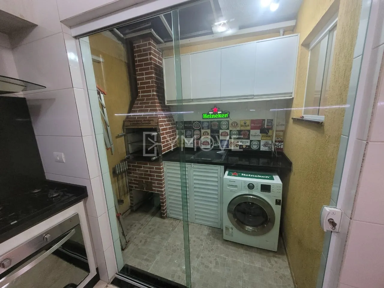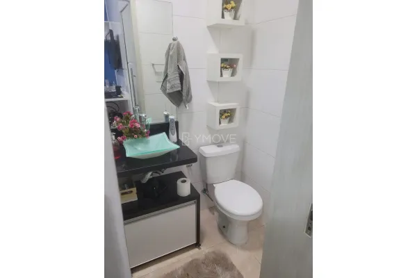 2 Dormitórios (2 Suítes), sala, cozinha, lavabo, área de serviço com churrasqueira e vaga de garagem!