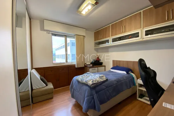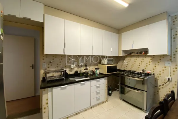 3 dormitórios, 2 banheiros, sala, cozinha, área de serviço, dependência de empregada e vaga de garagem.