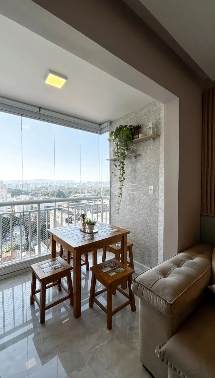 Conta com uma varanda envidraçada, ideal para momentos de relaxamento ou integração com a sala, criando um ambiente versátil e elegante.