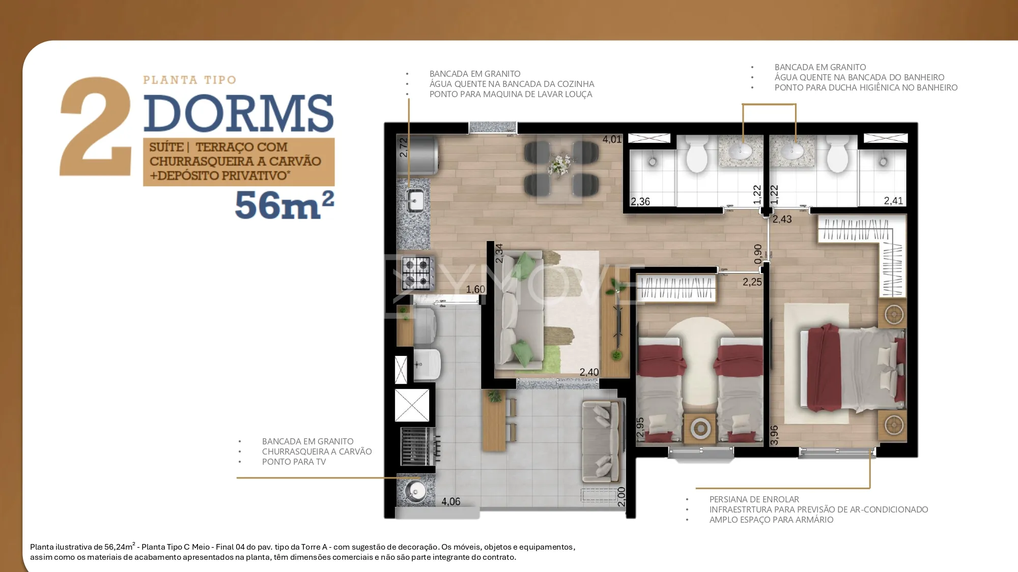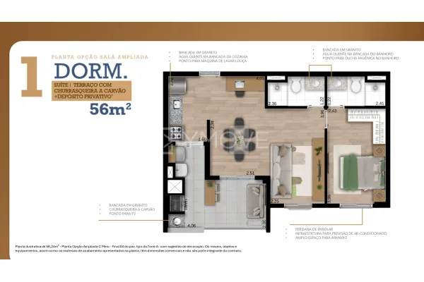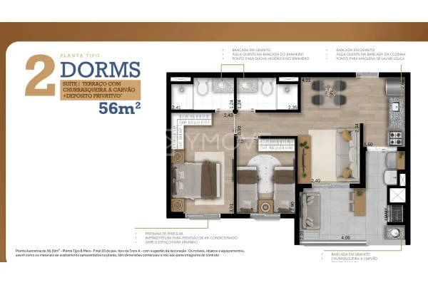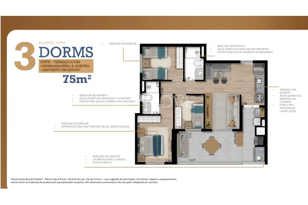 O Lumi Sphere conta com apartamentos de 2 ou 3 dormitórios, todos com suíte e terraço com churrasqueira a carvão, oferecendo plantas de 56m² ou 75m², ideais para quem busca funcionalidade sem abrir mão do bem-estar. São ambientes inteligentes, bem distribuídos, que valorizam cada espaço e garantem praticidade para o seu dia a dia.