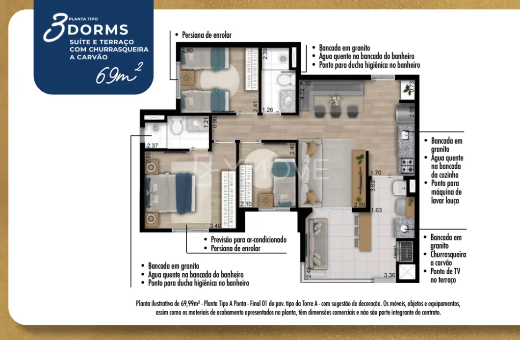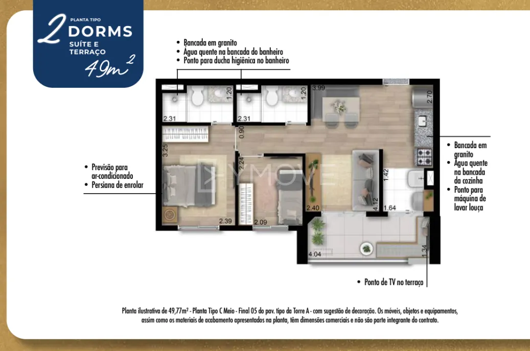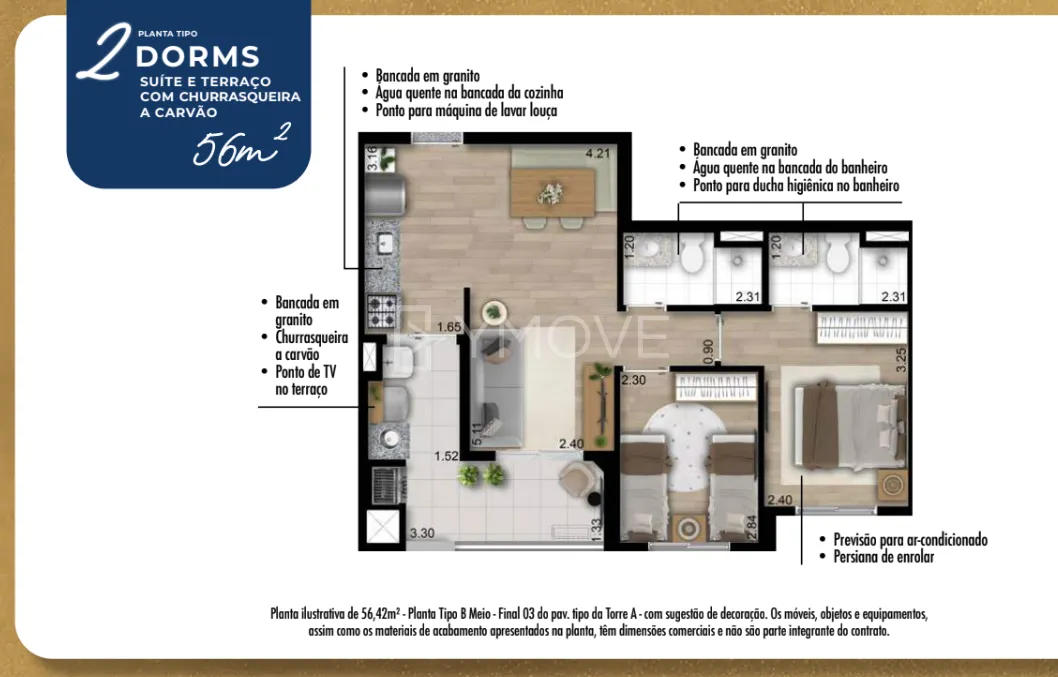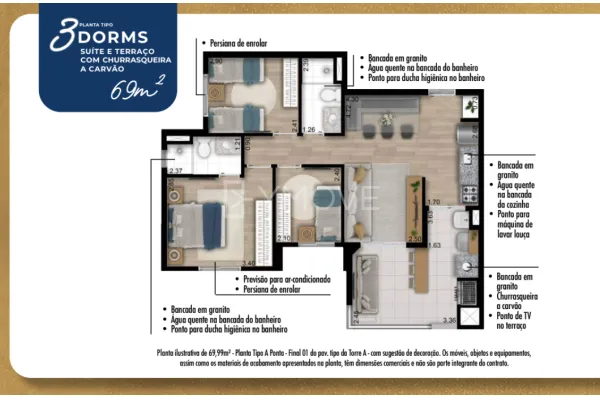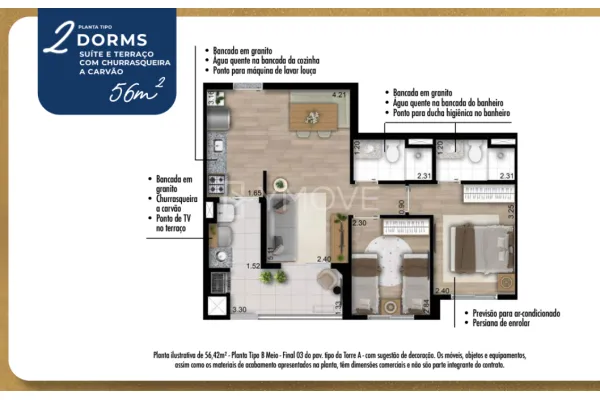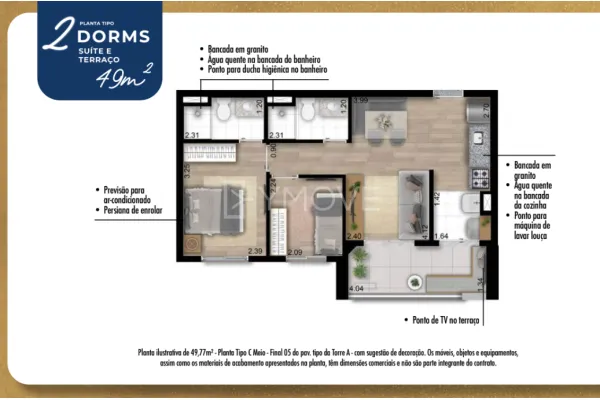 Viva seu conforto no alto, em uma torre imponente de 35 andares com apartamentos 2 e 3 dormitórios, com opções de plantas com de 49m², 56m² e 69m² projetados para oferecer o máximo de conforto e privacidade que você e sua família merecem.