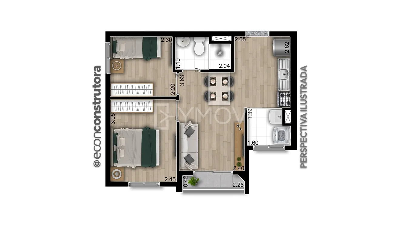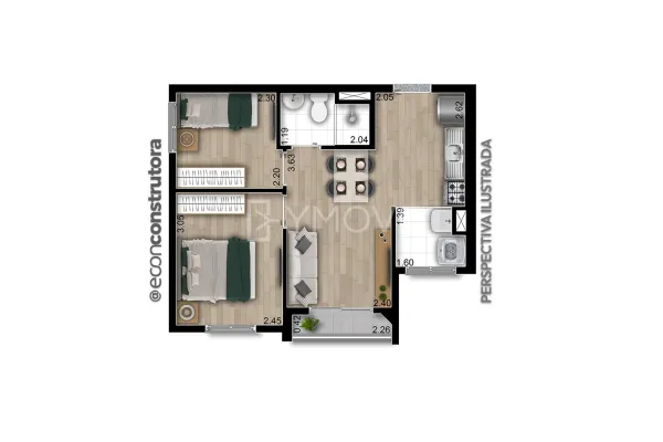 com 2 quartos,